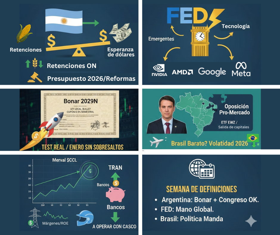Argentina necesita que le salga bien el Bonar + Congreso, la FED puede dar una mano global y Brasil nos recuerda que la política sigue mandando (y castigando) en emergentes.
